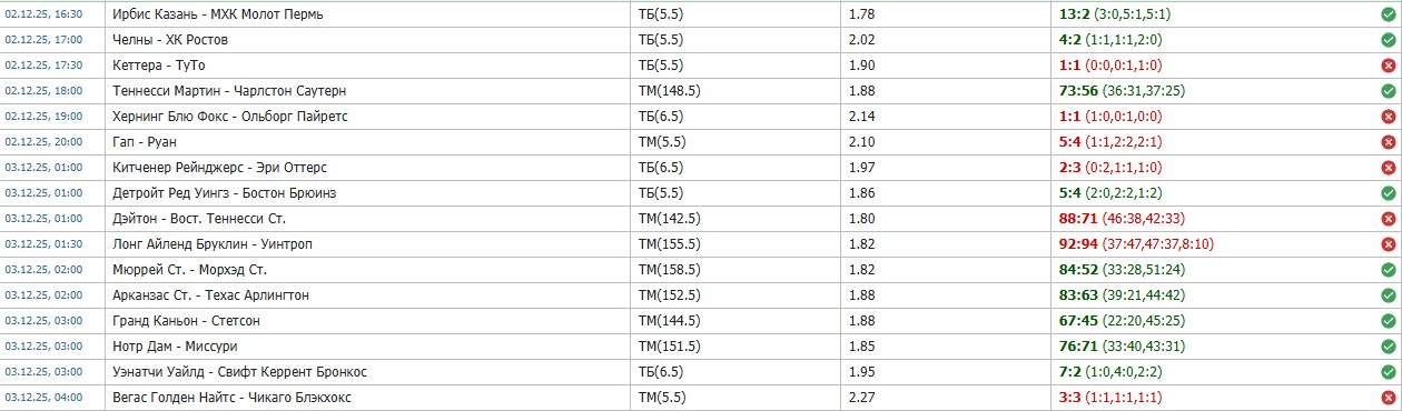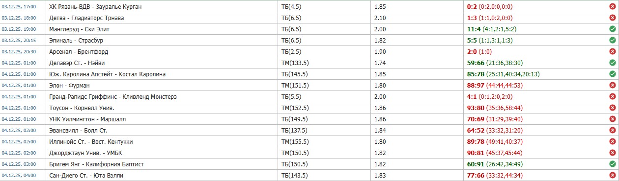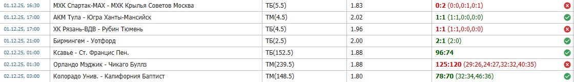 ВСЕГО СТАВОК - 0 (по состоянию на 1-е декабря)