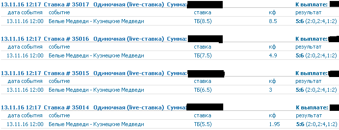 Скриншоты ставок на спорт 13-го ноября
