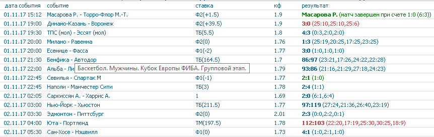 Прогнозы на спорт » Материалы за 02.11.2017