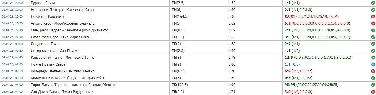 ВСЕГО СТАВОК - 0 (по состоянию на 1-е апреля)