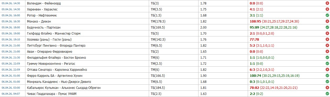 Уведомление о рисках: сайт не несет ответственности за результаты использования опубликованных прогнозов.