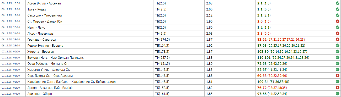 05.12.25, 01:00 Бостон Брюинз - Сент-Луис Блюз ТМ(5.5) 1.9205.12.25, 01:00 Норт Бей Баттальон - Сарния Стинг ТМ(6.5) 1.86