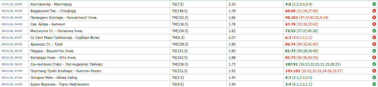 Ставки на 8 января