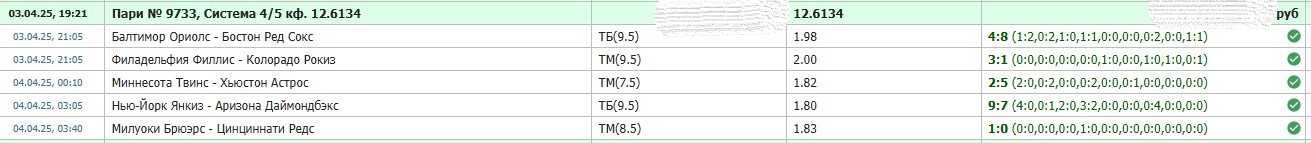 Бесплатные прогнозы на бейсбол / Скриншоты лучших прогнозов