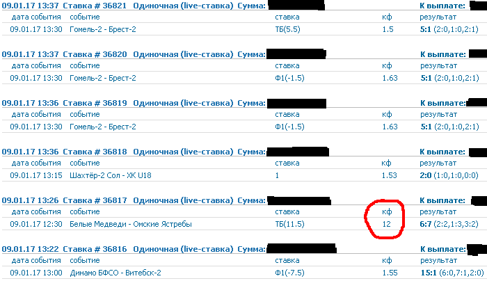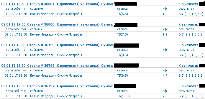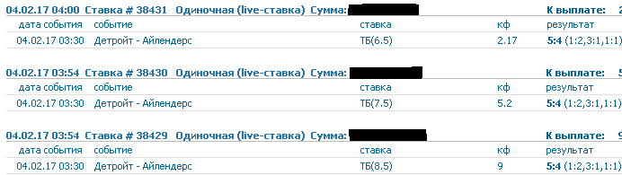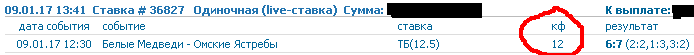 Вчера выдавал прогноз на "Больше" на Омских Ястребов в платной на хоккей - проиграл. Сегодня в онлайне отыгрался сполна...:) Да и вообще хоккей онлайн сегодня рулит...:) Выиграл аж два раза с коэффициентами - 12!