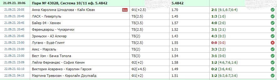 Скриншот ставок на спорт 21 сентября